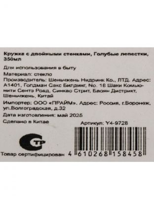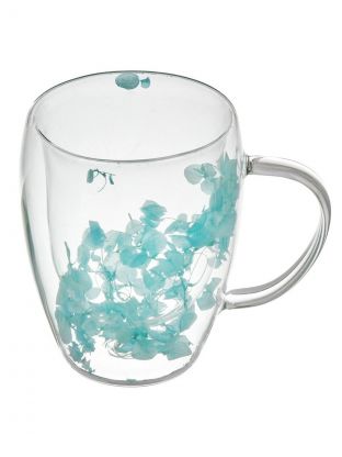 Кружка стекло, 350 мл, Голубые лепестки, двойные стенки, Y4-9728