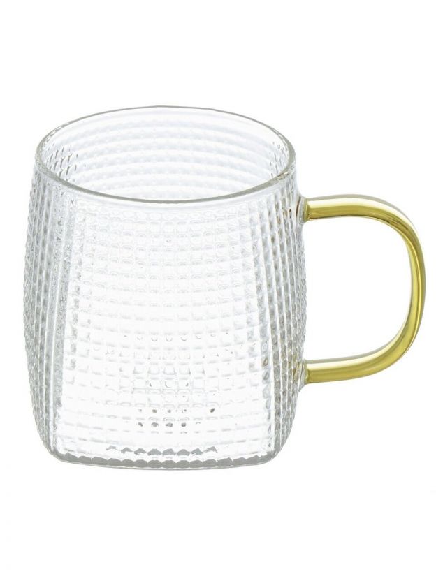 Откройте для себя изысканность и стиль с кружкой из стекла "Квадро" объемом 350 мл, которая станет настоящим украшением вашего стола благодаря своей уникальной золотой ручке. Эта кружка не только практична, но и привносит элемент роскоши в каждое чаепитие.