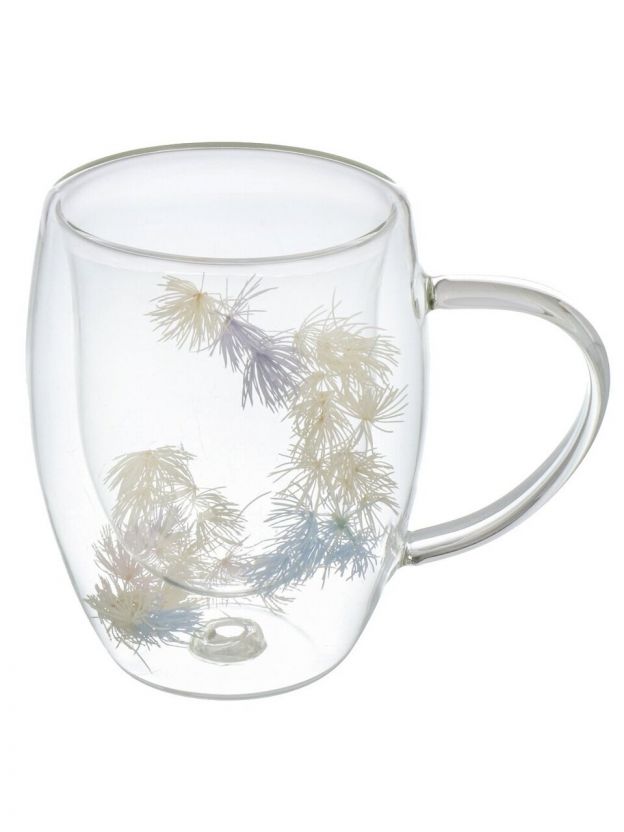Кружка стекло, 350 мл, Перья, двойные стенки, в индивидуальной упаковке, B060693