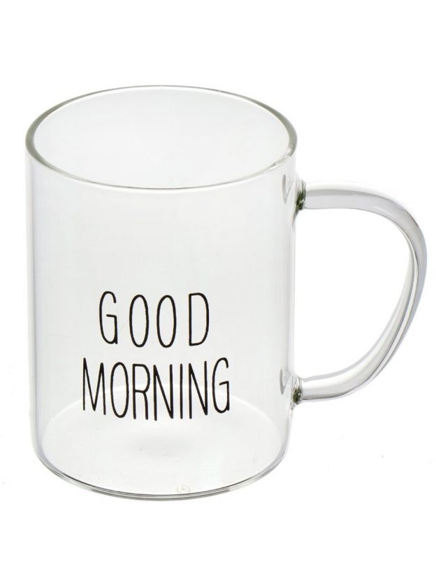 Стеклянная кружка 400 мл «Доброе утро» Y4-5387 — стильный выбор для дома и подарка: прозрачный дизайн, универсальный объём, подходит для СВЧ.