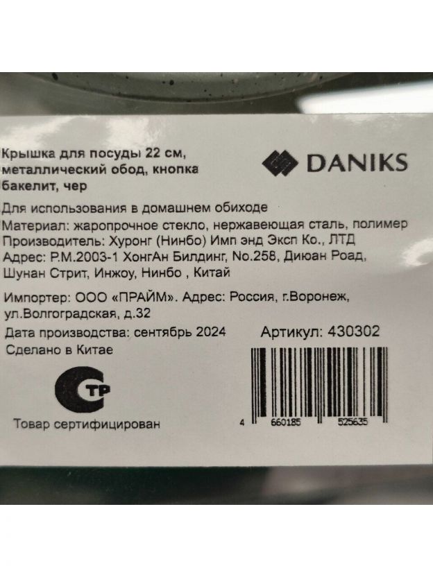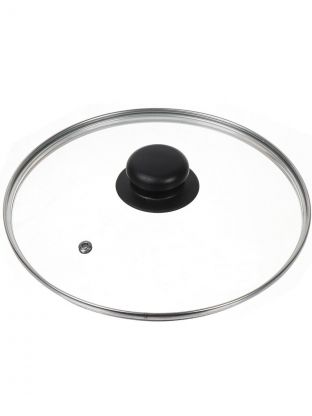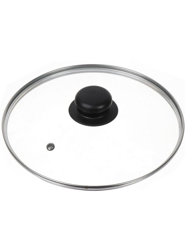 Крышка для посуды стекло, 22 см, Daniks, металлический обод, кнопка бакелит, черная, Д4122Ч