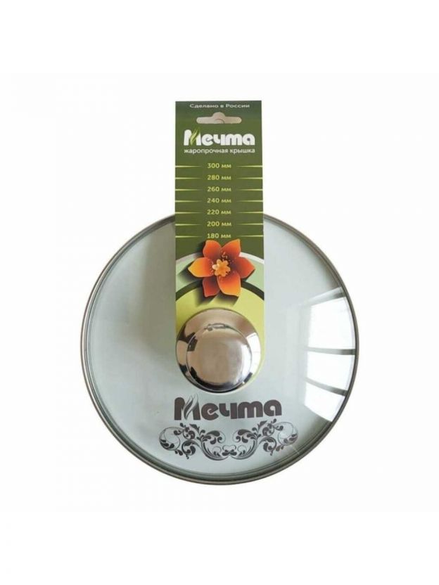 Крышка для посуды стекло, 22 см, Мечта, металлический обод, кнопка нержавеющая сталь, КР22