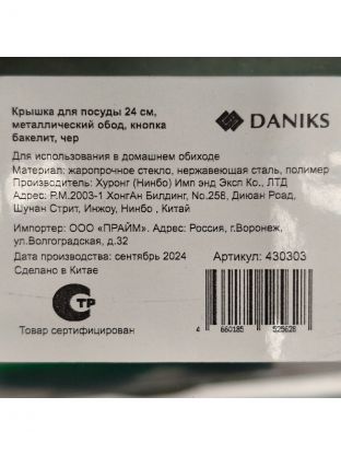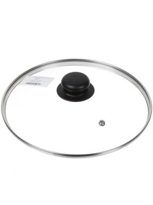 Крышка для посуды стекло, 24 см, Daniks, металлический обод, кнопка бакелит, черная, Д4124Ч