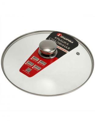 Крышка для посуды Гардарика 24 см — прочное стекло, металлический обод и стальная кнопка. Безопасно, удобно, долговечно для кухни и дачи.