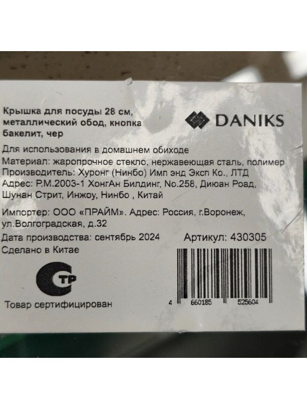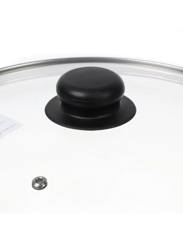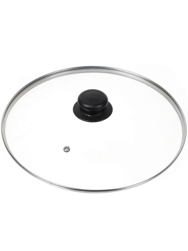 Крышка для посуды стекло, 28 см, Daniks, металлический обод, кнопка бакелит, черная, Д4128Ч