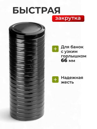 Крышка металл, 20 шт, для мал.банок с уз.горл твист-офф 66мм, Авестар, Черная, ТО66-МЧЕ-20