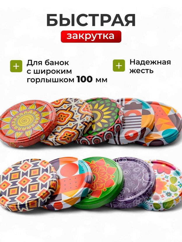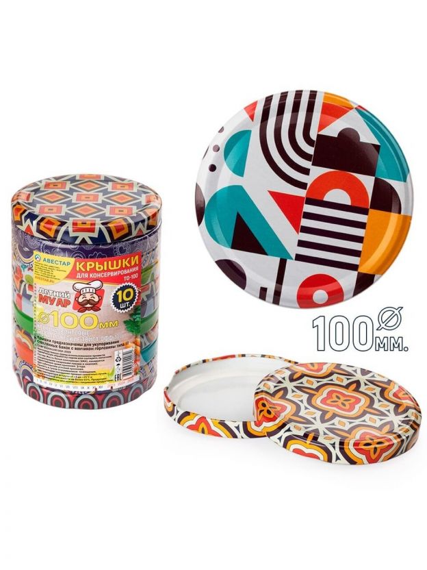 Крышка металл, винтовая, 10 шт, твист-офф,100мм, для банок с шир.горлом, Авестар, Муар, ТО100-МУАР-10, в ассортименте