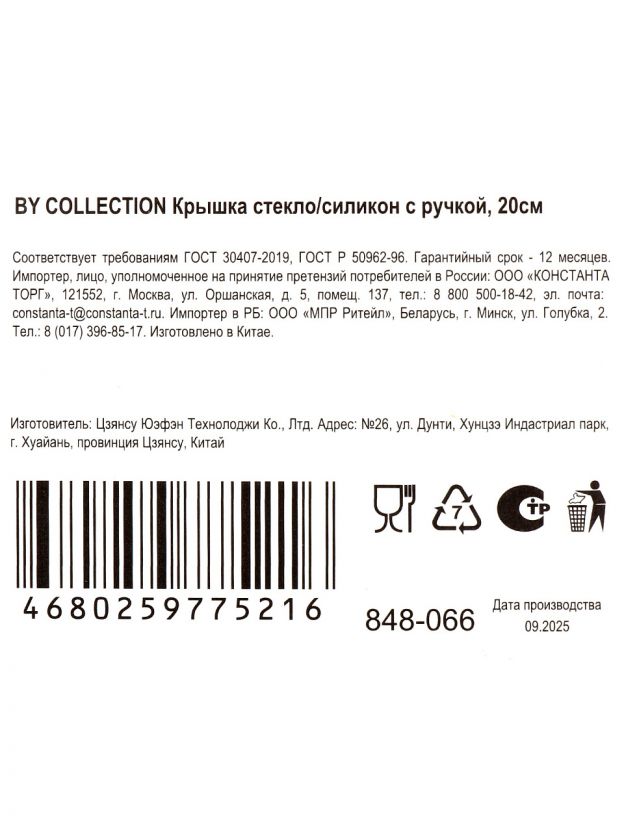 Закажите крышку для посуды BY Collection 20 см — получите надежное и безопасное решение для дома, дачи или в подарок.