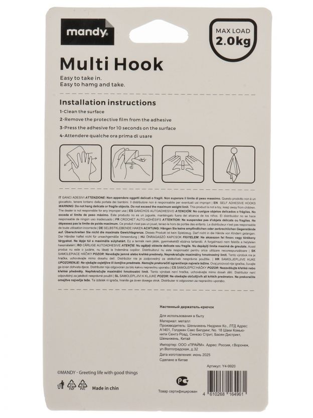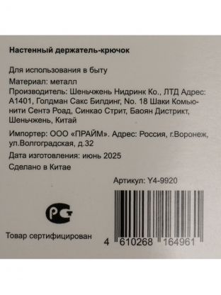 Закажите крючок-держатель Y4-9920 прямо сейчас — получите стильный аксессуар, который прослужит долгие годы и поможет поддерживать порядок.