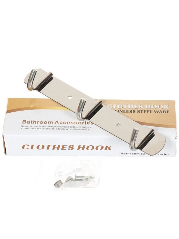 • Три металлических крючка на прочной планке — удобно разместить одежду, полотенца, аксессуары в одном месте;
