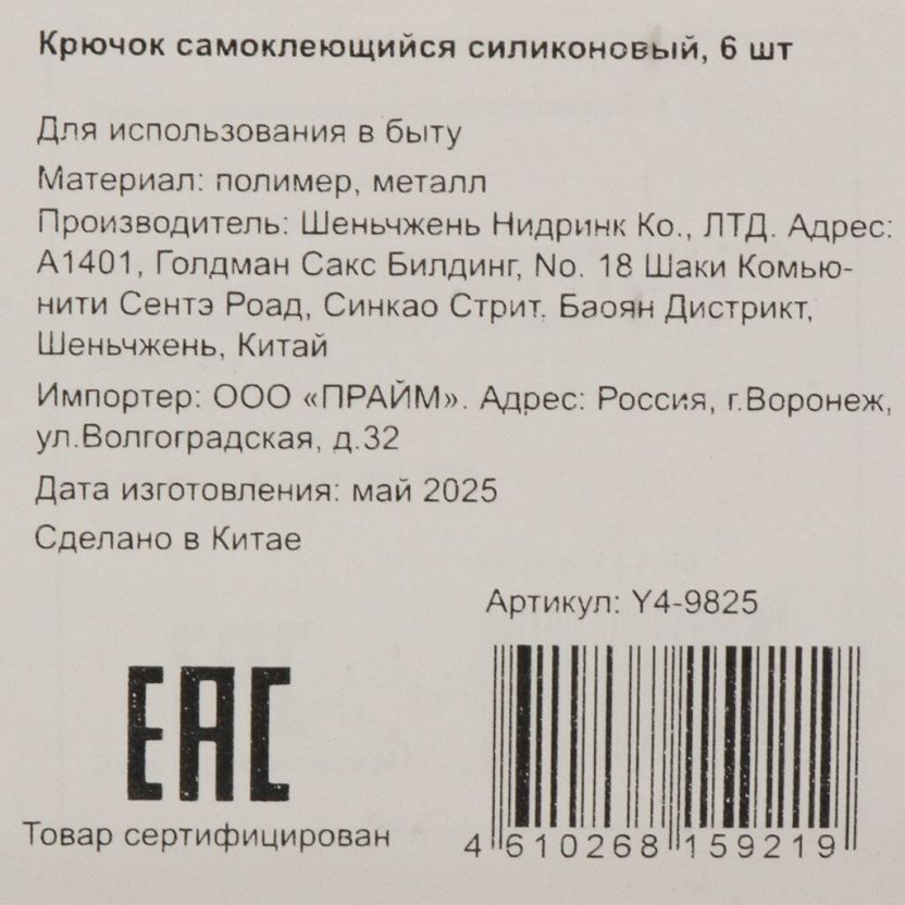 Крючок самоклеящийся, 6 шт, силикон, Y4-9825 — удобное решение для организации пространства дома и дачи. Силиконовая поверхность обеспечивает надежную фиксацию на различных поверхностях без сверления. Компактный дизайн гармонично впишется в любой интерьер, а установка займет всего пару минут. Идеально для кухни, ванной, прихожей и других помещений.