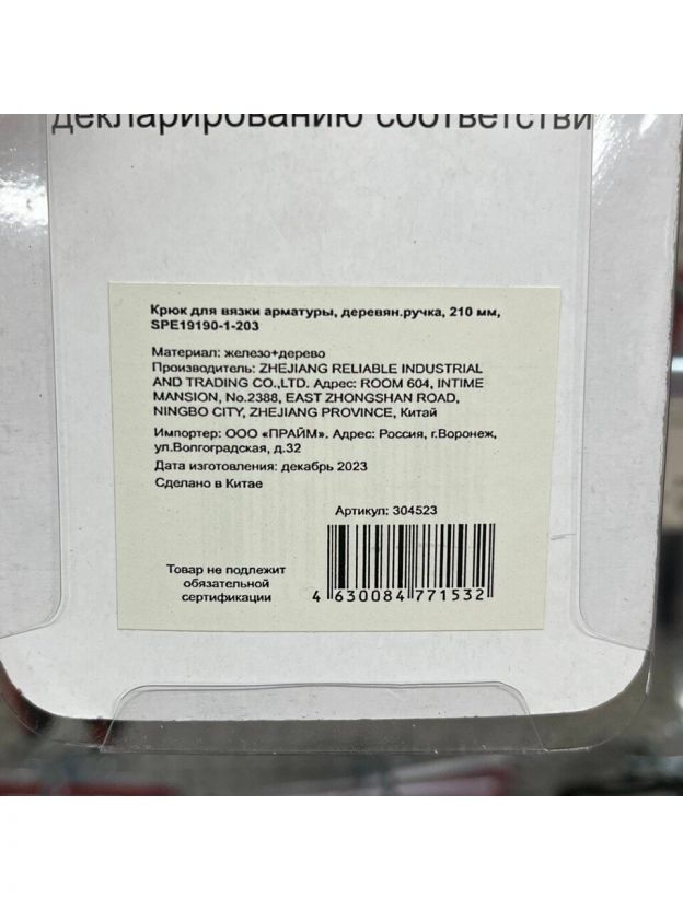 Крюк для вязки арматуры, деревянная ручка, 210 мм, SPE19190-1-203
