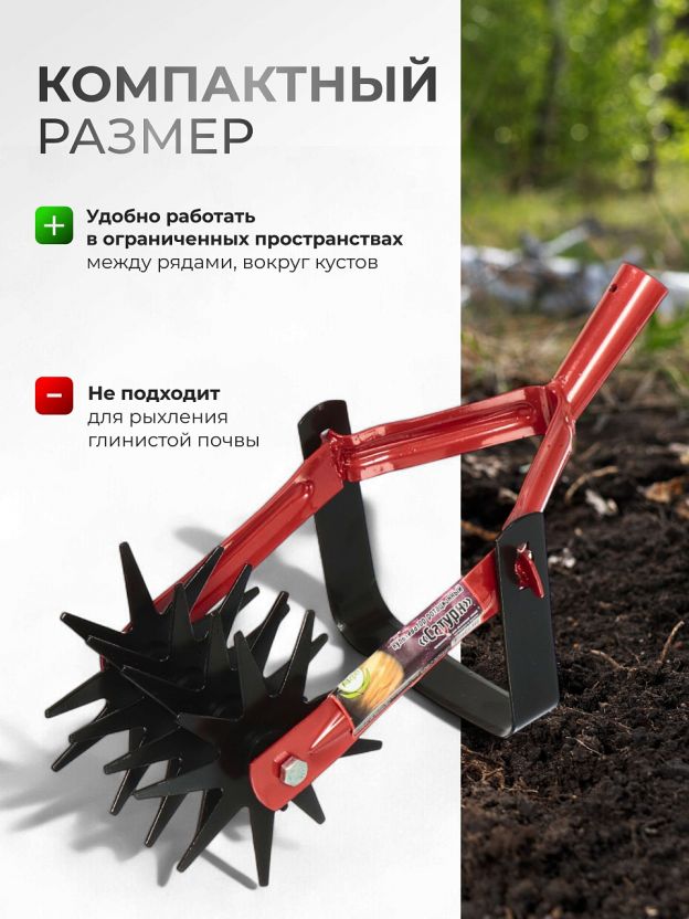 Внимание! Культиватор не создан для разрыхления плотной глинистой почвы.