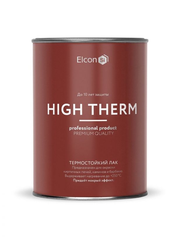 Термостойкий лак для печей и каминов Elcon High Therm бесцветный до 250°C (0,7 кг) предназначен для декоративного окрашивания кирпичных, каменных, металлических, бетонных и других поверхностей, подверженных воздействию перепадов температур от -60°С до +250°С.