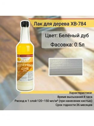 Лак НовБытХим, ХВ-784, полуглянцевый, перхлорвиниловый, дуб беленый, для внутренних и наружных работ, 0.5 л