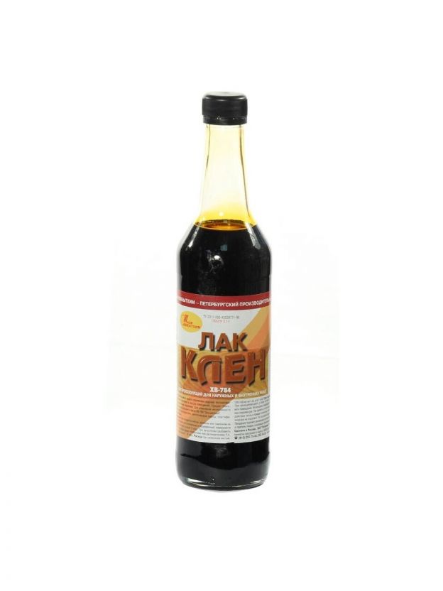 Лак быстро высыхает, образуя покрытие, устойчивое к воздействию воды, слабых растворов кислот, спиртов, солей и щелочей.