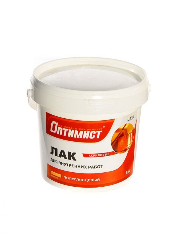 Лак Оптимист, L208, полуглянцевый, акриловый, бесцветный, для внутренних и наружных работ, 0.9 кг