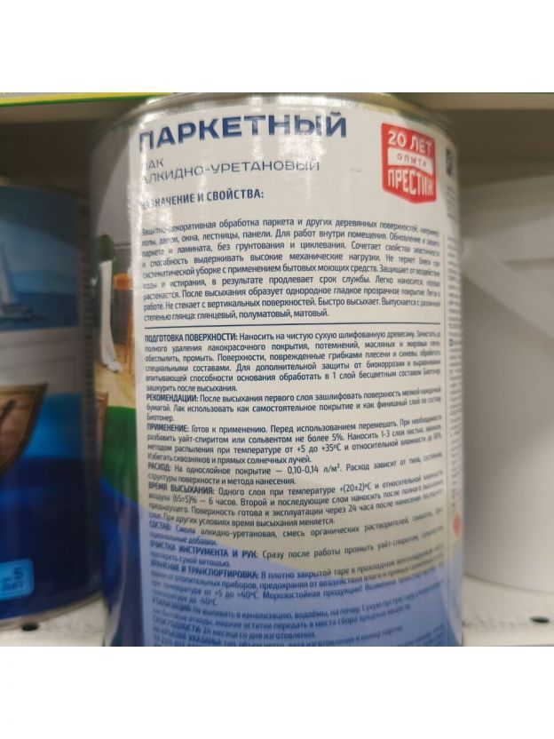 Лак Престиж, паркетный, глянцевый, алкидно-уретановый, для внутренних работ, 0.9 кг