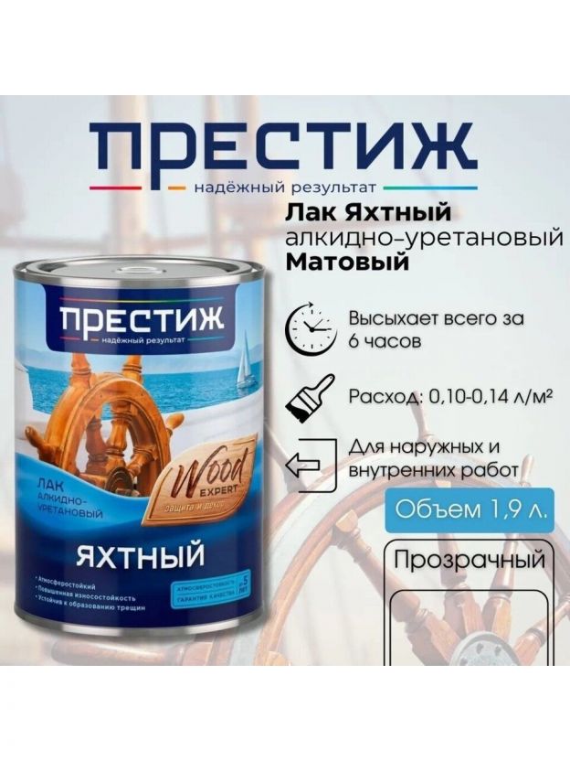 Лак Престиж, яхтный, матовый, алкидно-уретановый, для внутренних и наружных работ, 0.9 л