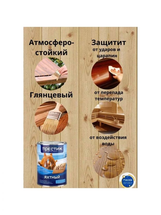 Яхтный лак Престиж - это идеальное решение для защиты и украшения деревянных поверхностей, подвергающихся воздействию влаги и температурных колебаний. Он отлично подойдет для обработки фасадов зданий, мебели для дачи, кухонных гарнитуров, ванных комнат, кают. Подходит как для внутренних, так и для наружных работ.