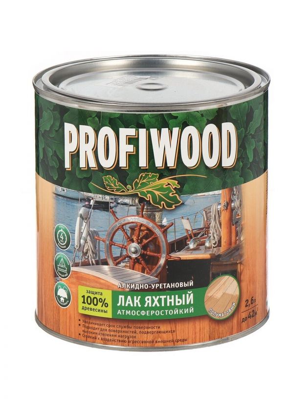 Лак Profiwood, яхтный, полуматовый, алкидно-уретановый, для внутренних и наружных работ, 2.4 кг