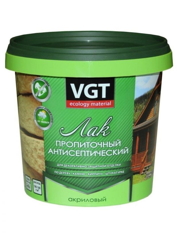 Лак VGT, антисептик, полуглянцевый, акриловый, палисандр, для внутренних и наружных работ, 0.9 кг