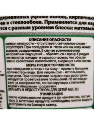 Состав: Водная дисперсия акрилового полимера, антисептические и модифицирующие добавки.