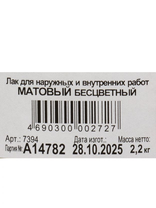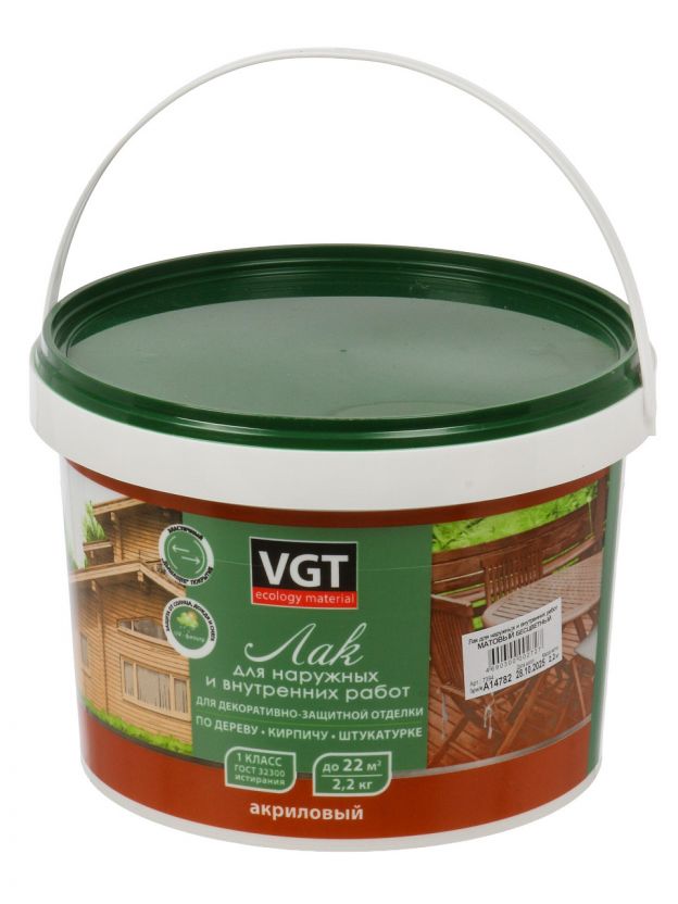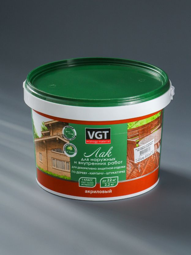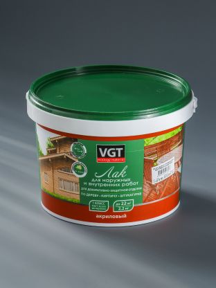 Лак VGT, матовый, акриловый, бесцветный, для внутренних и наружных работ, 2.2 кг