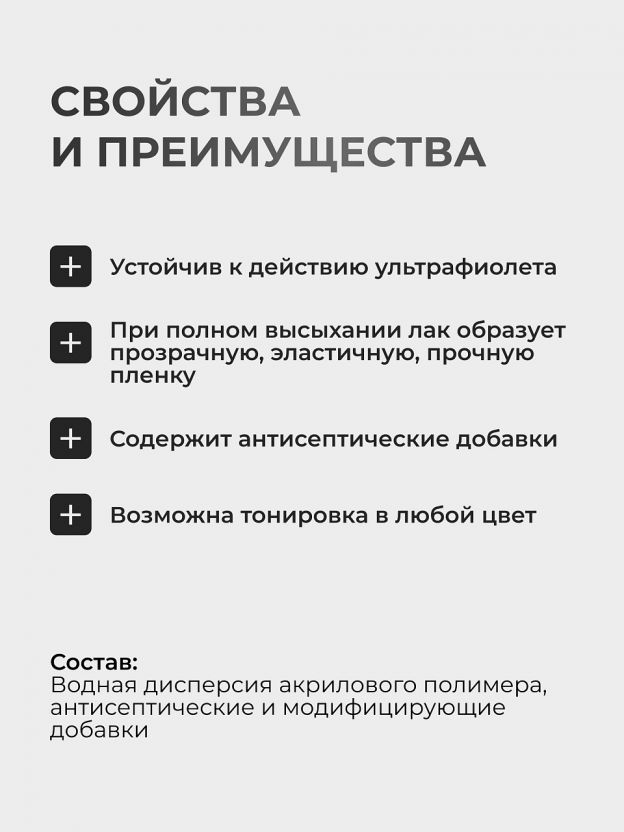 Состав: Водная дисперсия акрилового полимера, антисептические и модифицирующие добавки.