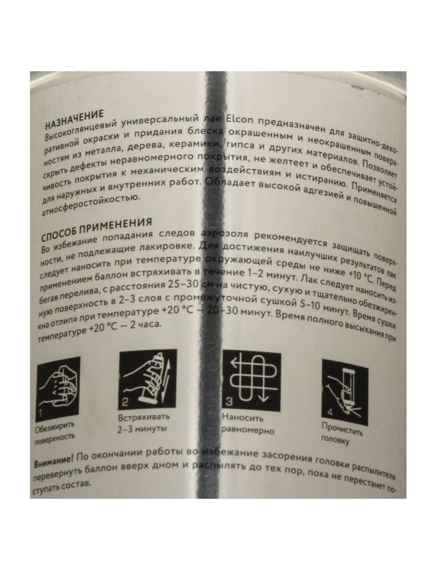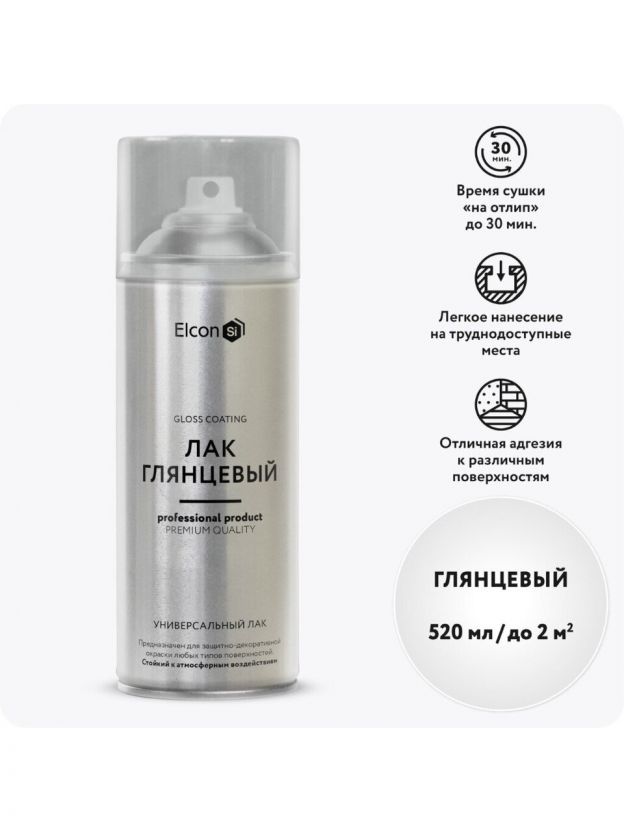 Лак аэрозольный, Elcon, универсальный, глянцевый, акриловый, бесцветный, для внутренних и наружных работ, 0.52 л