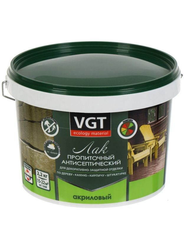 Лак-антисептик VGT, 10461, полуглянцевый, акриловый, сосна, для внутренних и наружных работ, 2.2 кг