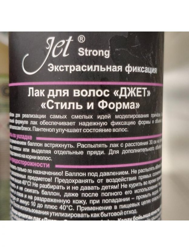 Средство Jet предназначено для укладки коротких волос и волос средней длины. Лак образует жёсткую плёнку на локонах, что позволяет фиксировать причёску любой сложности.