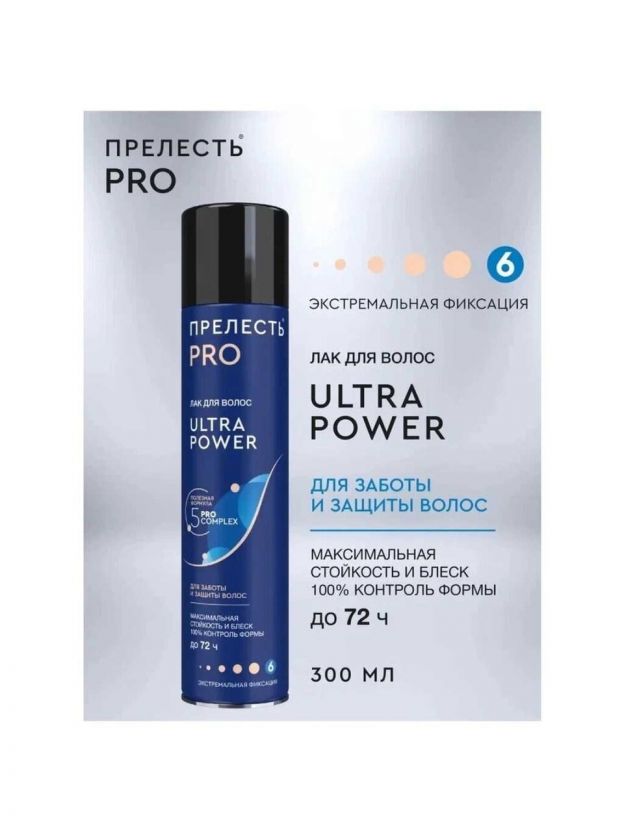 Лак для волос Прелесть Professional, Ultra power, экстремальная фиксация, 300 мл