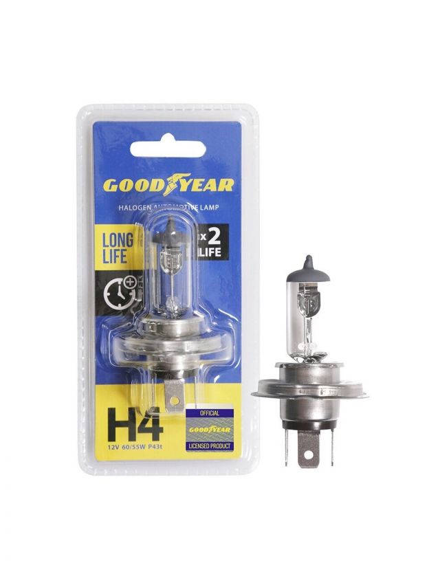 Лампа автомобильная Goodyear, Long life Н4, GY014123, 12V 60/55W P43t
