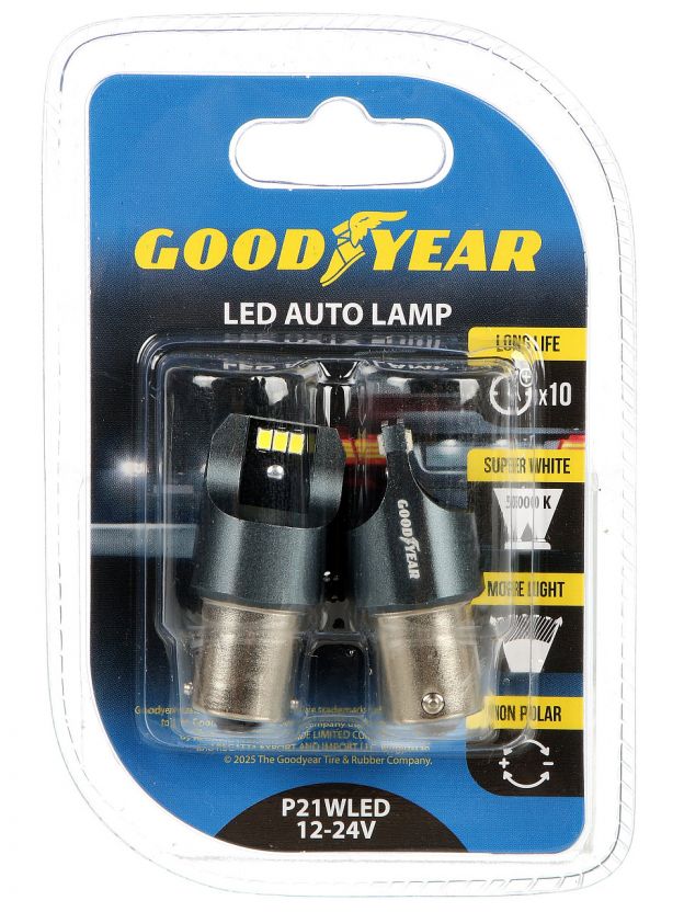 Автомобильная светодиодная лампа Goodyear P21 WLED 12-24V (2 шт): надежный свет для безопасности и экономии — выбирайте долговечность и яркость по доступной цене.