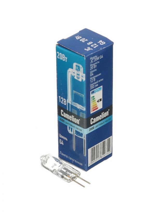 Лампа галогенная G4, 20 Вт, 12 В, капсула, JC, свет белый, Camelion, 1955