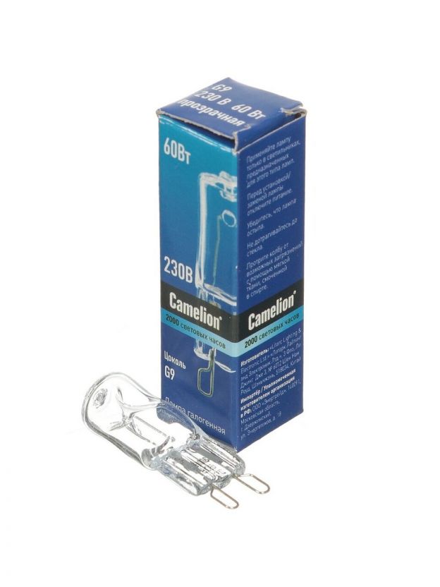 Лампа галогенная G9, 60 Вт, 220 В, капсула, свет белый, Camelion, 5555