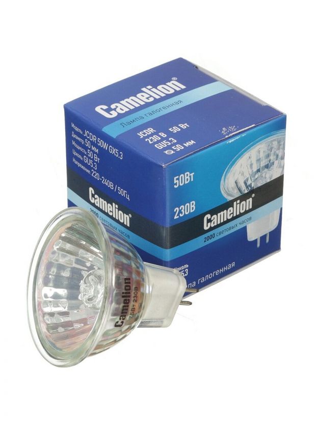 Лампа галогенная GU5.3, 50 Вт, 230 В, JCDR, с отражателем, 50 мм, Camelion, 1953