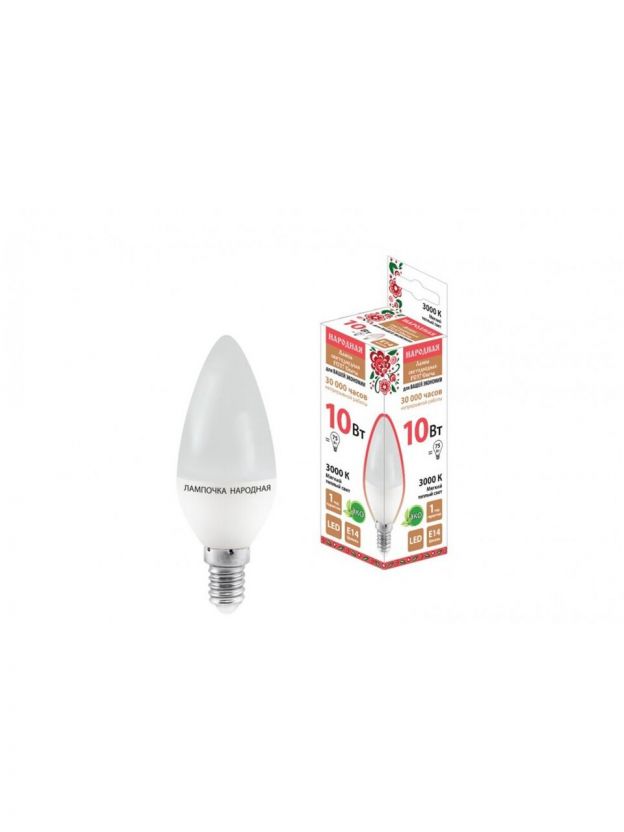 Лампа светодиодная E14, 10 Вт, 75 Вт, свеча, 3000 К, теплый белый свет, TDM Electric, Народная, SQ0340-1592