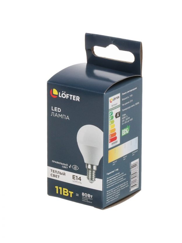 Лампа светодиодная E14, 11 Вт, 80 Вт, 220 В, шар, 3000 К, теплый белый свет, Lofter
