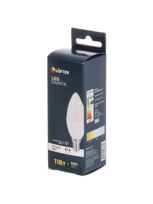 Лампа светодиодная E14, 11 Вт, 80 Вт, 220 В, свеча, 3000 К, теплый белый свет, Lofter
