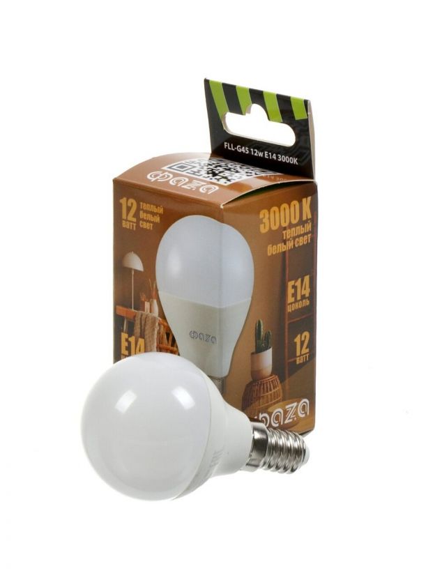 Лампа светодиодная E14, 12 Вт, 230 В, 3000 К, теплый белый свет, ФАZА, FLL- G45, 5038561