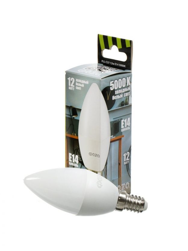 Лампа светодиодная E14, 12 Вт, 230 В, 5000 К, холодный белый свет, ФАZА, FLL- C37, 5038530
