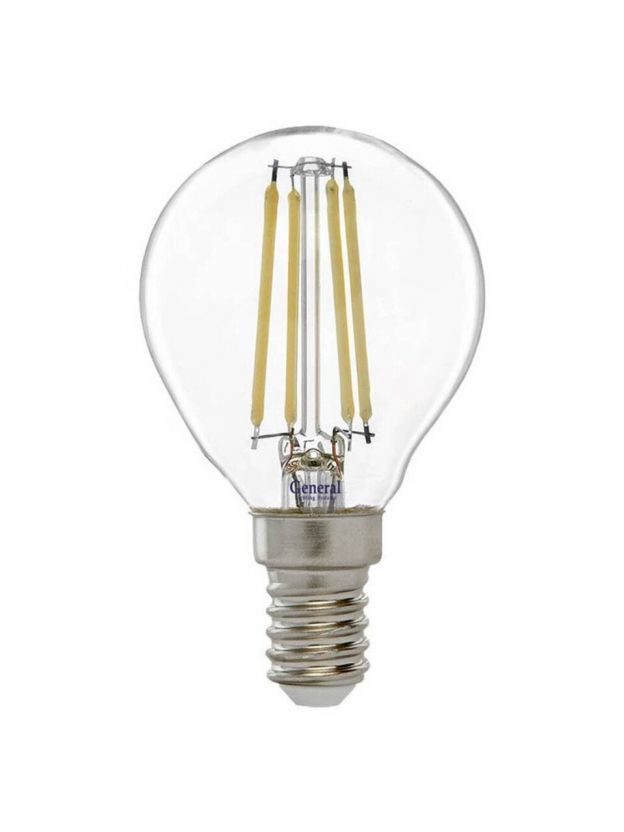Лампа светодиодная E14, 15 Вт, 170-260 В, шар, 6500 К, General Lighting Systems, Филамент, прозрачное стекло, 661430