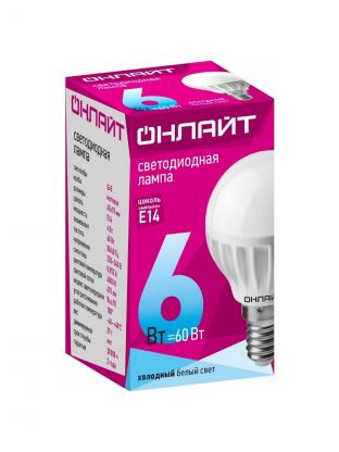 Лампа светодиодная E14, 6 Вт, 60 Вт, шар, 4000 К, нейтральный белый свет, Онлайт, 71644