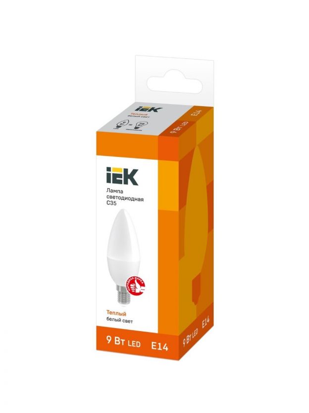 Лампа светодиодная E14, 9 Вт, 60 Вт, 230 В, свеча, 3000 К, теплый белый свет, IEK, C35, LED, LLE-C35-9-230-30-E14