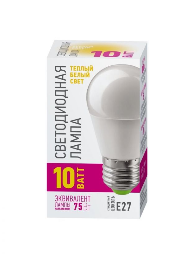 Лампа светодиодная E27, 10 Вт, 100 Вт, шар, 2700 К, теплый белый свет, Онлайт, 82911