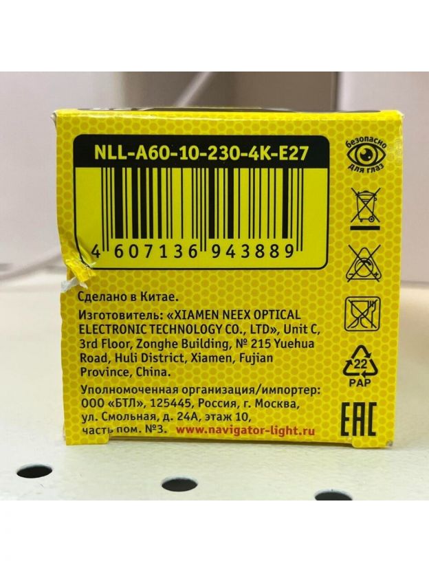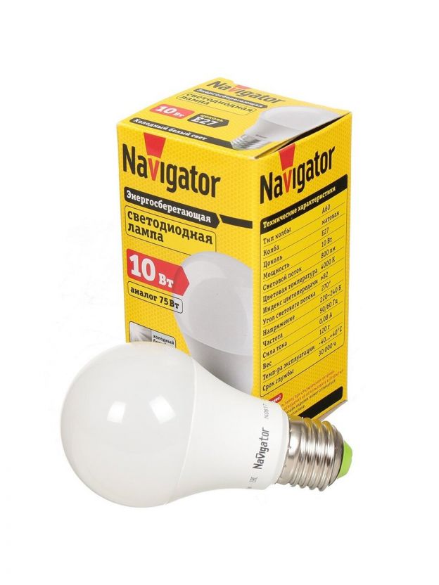 Лампа светодиодная E27, 10 Вт, 75 Вт, груша, 4000 К, нейтральный белый свет, Navigator, 94388