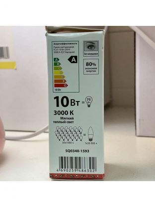 Лампа светодиодная E27, 10 Вт, 75 Вт, свеча, 3000 К, теплый белый свет, TDM Electric, Народная, SQ0340-1593