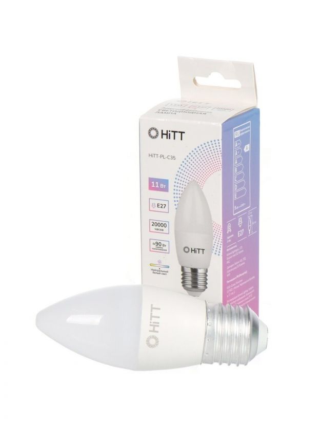 Лампа светодиодная E27, 11 Вт, 110 Вт, 230 В, свеча, 4000 К, нейтральный белый свет, HiTT, HiTT-PL-C35, C35, 1010038